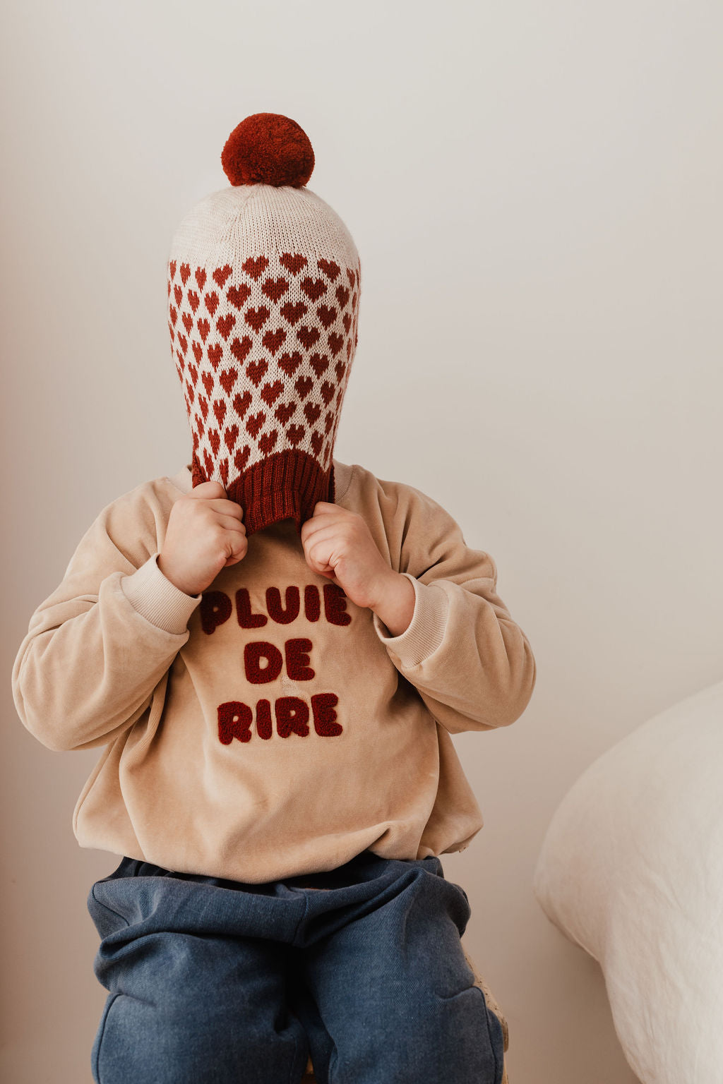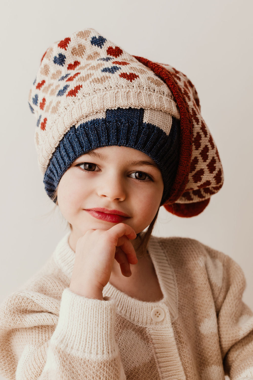 Bonnet ALIX motif cœurs tricolores