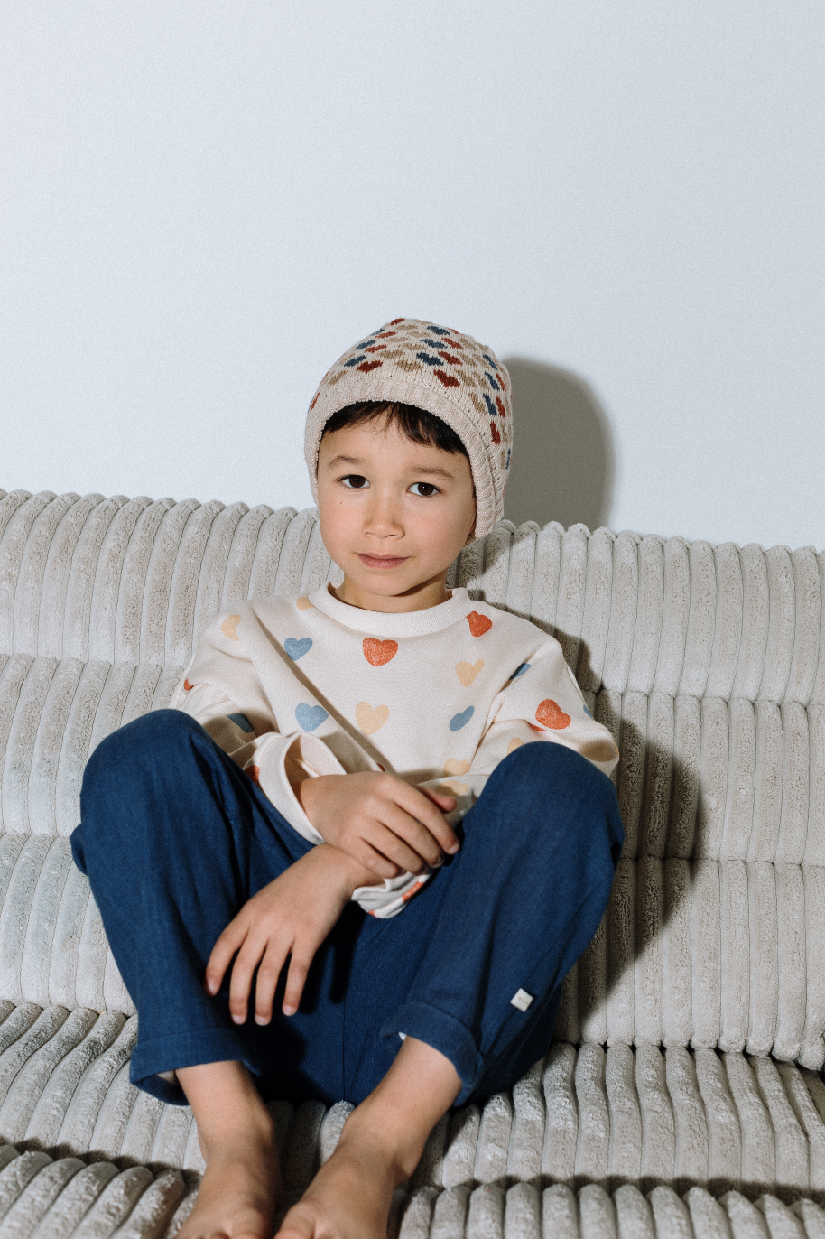 Bonnet ALIX motif cœurs tricolores
