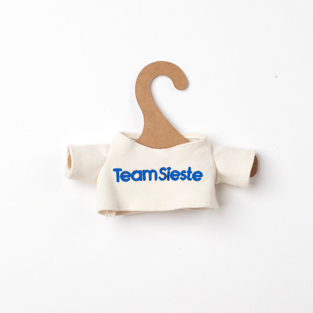Le t-shirt brodé Team Sieste en version mini pour nos peluches. Tout doux et facile à enfiler, il est parfait pour accompagner les câlins et les moments de repos.