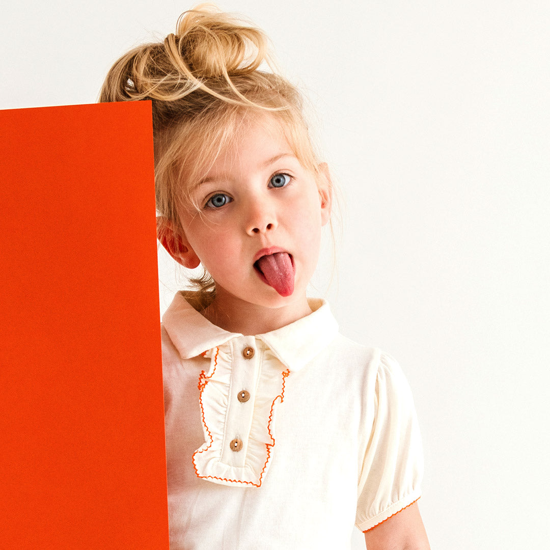 T-shirt TOM en coton bio coloris crème imprimé "Team sieste" orange