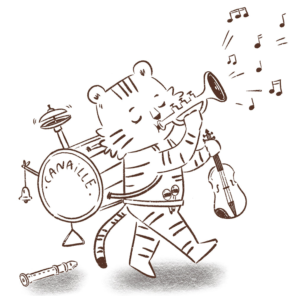 Alors Ali joue de la trompette dans la forêt — parce qu’à la maison, il faut faire doucement.